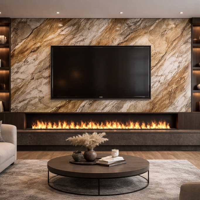 Venetian plaster is increasingly used on media walls, creating a striking focal point around fireplaces and televisions. The seamless finish eliminates joints and lines, offering a clean, architectural look that complements modern homes.